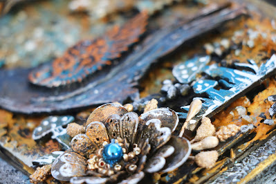 The next way I like to alter Chipboard, especially engraved chipboard, where it is important to keep the coverage light so the engraving can show through. First paint with a light coat of gesso, then dry, repaint with another light coat, dry well, then I have used Colour Blast Shimmer dusts to paint the holly and berries, I have used Fern and Candy here. I like to let the first coat dry and then add accents with a second coat. then to finish, spray with a little hairspray to set, if you are quick, sprinkle with a fine layer of white glitter for an amazing sparkling finish.